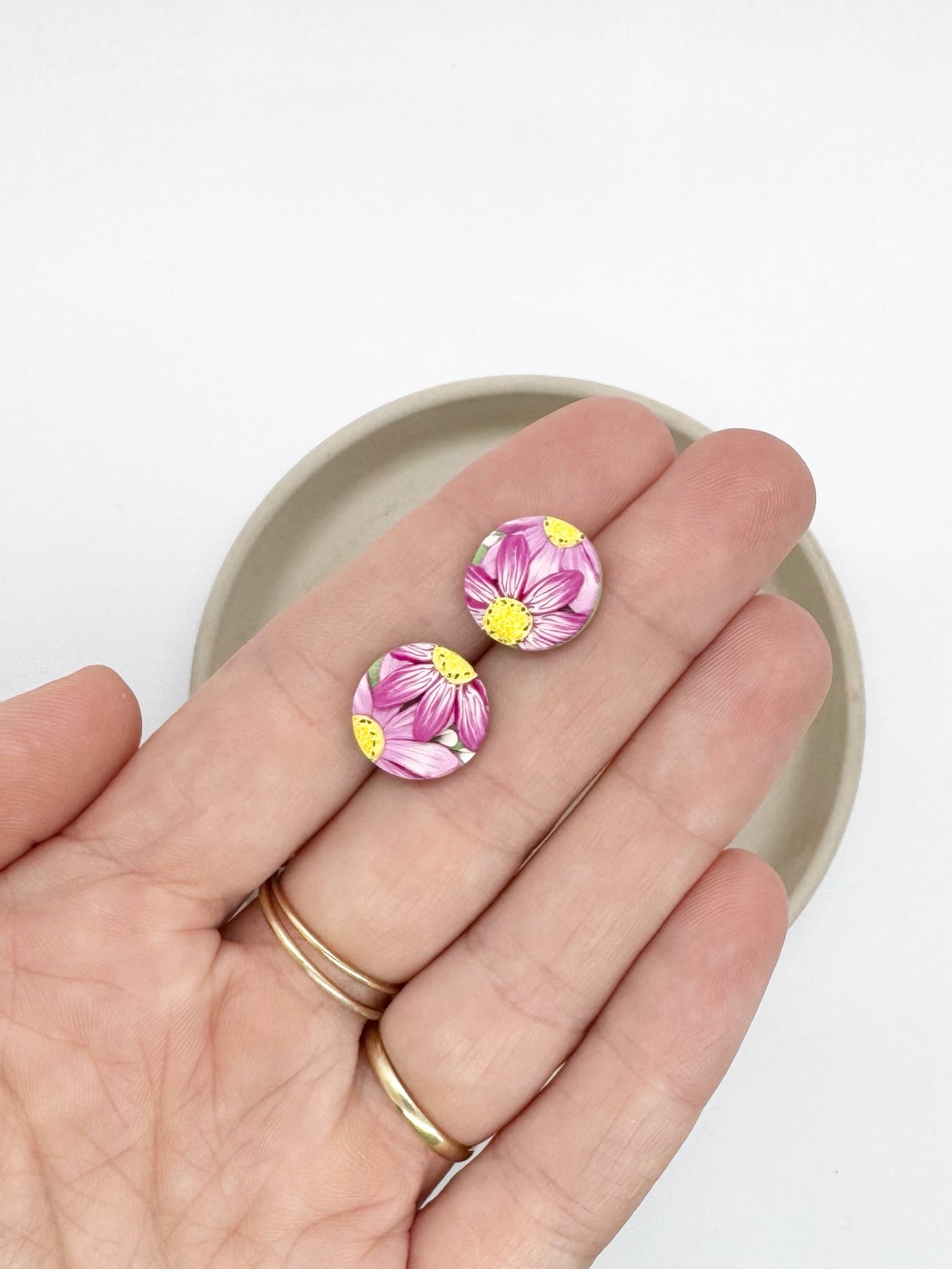 • Load image into Gallery viewer, Pink Cosmos Circle Stud Earrings