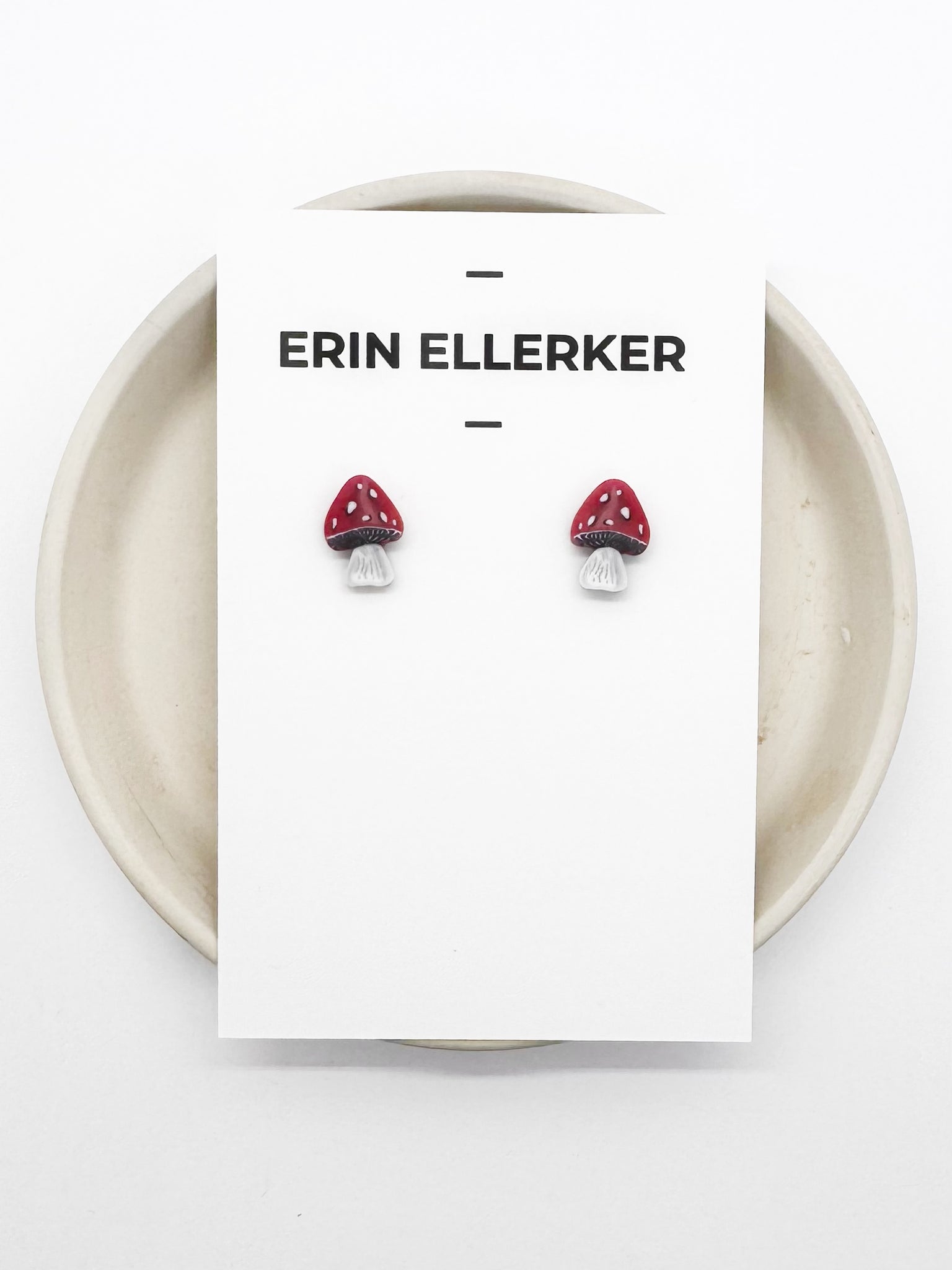 • Load image into Gallery viewer, Mini Mushroom Stud Earrings